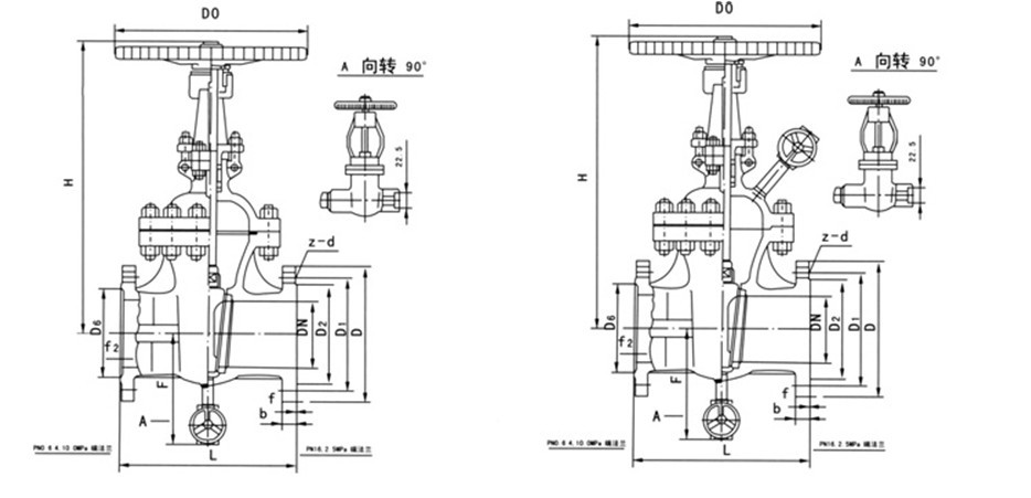 3、Z1仿、Z2仿系列帶吹掃閘閥也適用于水、蒸汽、煙氣、油品或霧狀、粉末狀、顆粒狀等介質(zhì)的管路上,作為起閉裝置用,尤其適用于石化行業(yè)輸油和催化裂變系統(tǒng),起著啟閉、清洗沖刷管道的作用
